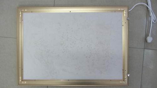 4、 清潔設備安裝時留下灰雜,撕掉導光板及面板進行單面保護膜,將畫面用雙面膠粘材料貼在企業面板數據四周(畫面正面朝面板),畫面朝燈箱內側置放;