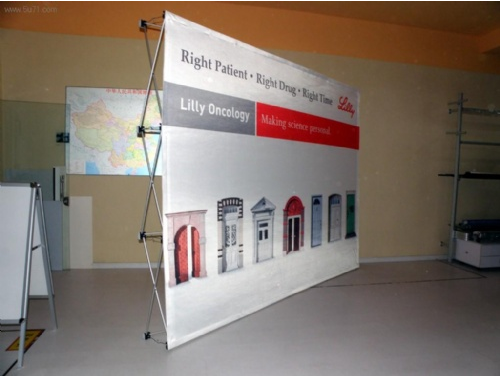 采用X架方便擺放,攜帶,可支持大面積噴繪畫面..X展架的性價比相對較高,它的廣告設計效果分析可以與易拉寶相媲美。